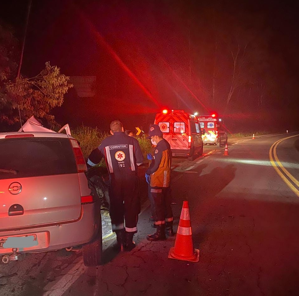 Quando o equipes do Corpo de Bombeiros chegaram ao local, encontraram o automóvel parcialmente destruído. O condutor estava preso às ferragens e sem sinais vitais. Os militares realizaram a sinalização da via e utilizaram ferramentas de desencarceramento para acessar o interior do carro.