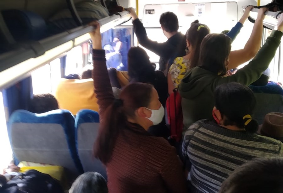 Durante esta semana, passageiros de ônibus da empresa Cordial, na linha que liga a comunidade de Perobas à sede do município de Domingos Martins, relataram aglomeração no interior dos coletivos. Por meio de fotos, os usuários chegaram a registrar pessoas em pé no corredor por volta das oito horas da manhã. A preocupação é devido ao risco de contaminação pela Covid-19.