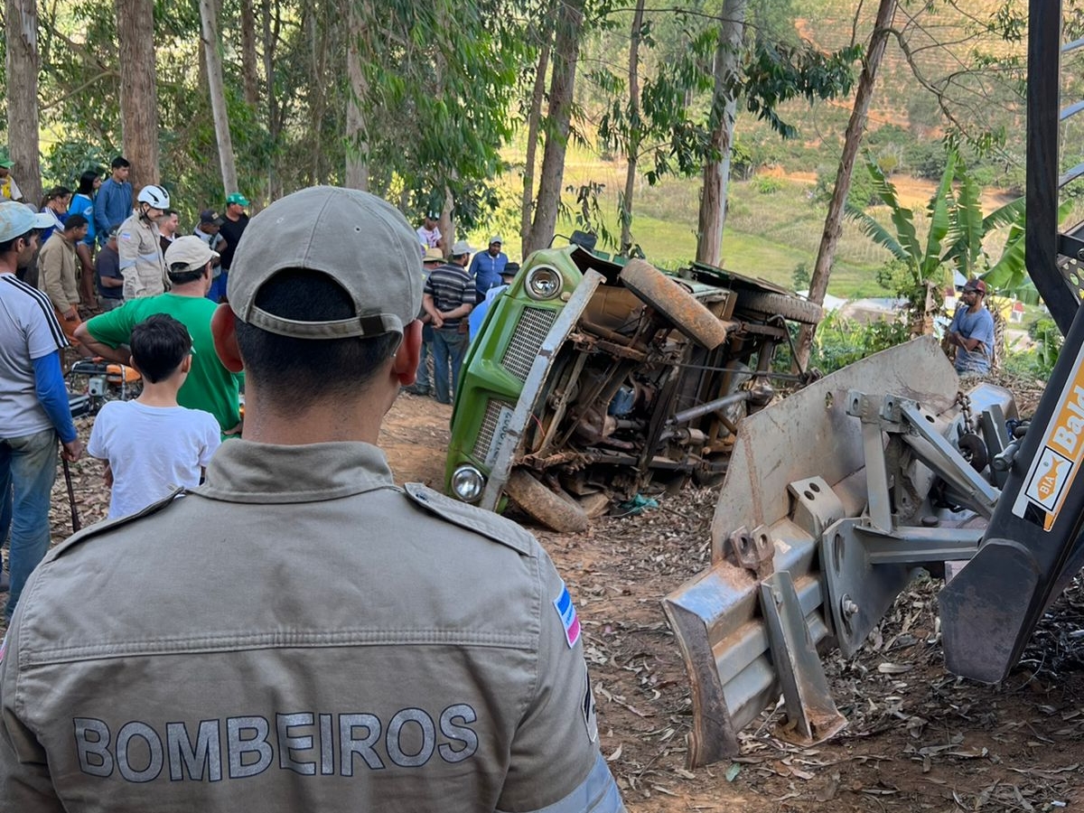 Um agricultor morreu, na manhã de hoje (22), quando a sua caminhonete tombou em uma estrada no meio de uma plantação de café. De acordo com informações do Corpo de Bombeiros, testemunhas disseram que o veículo começou a descer o morro e o produtor rural tentou subir na caminhonete com o intuito de para-la, mas o carro tombou em cima dele.
