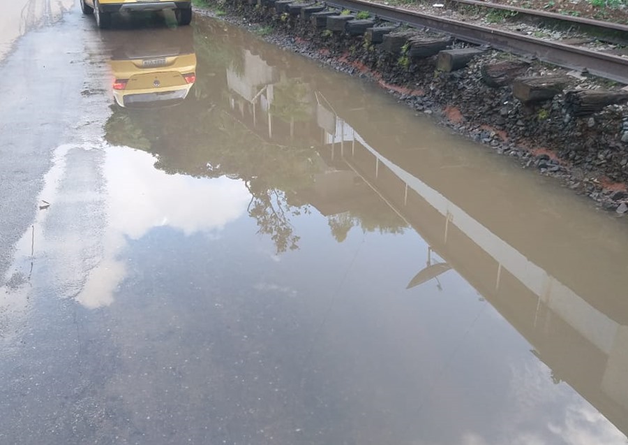 O local se transforma em uma verdadeira represa quando chove. No dia de ontem devido as constantes e ininterruptas chuvas, o trecho acabou se transformando em um aguaceiro e com a passagem dos veículos a água acaba invadindo as residências ao lado da antiga linha do trem.