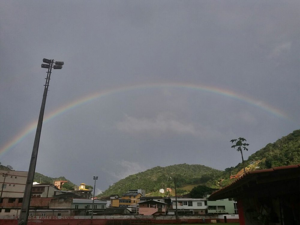 Arco-íris encanta moradores de Marechal Floriano, mas a baixa temperatura permanece firme