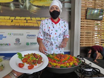 Para a Rita Arlinda de Freitas, que preparou o Arroz de Marechal, foi um uma surpresa abrir o evento com seu prato. ”Eu não sabia que era eu que iria abrir a RuralturES, fiquei sabendo quando cheguei que seria a primeira. Foi muito emocionante e prazeroso abrir esse evento, que para mim tem muita importância, pois é um evento de grande escala no setor de turismo rural do Estado. Eu quero agradecer aos organizadores desse evento pela oportunidade. É um desafio fazer uma apresentação nesse porte e ainda público, mas é sempre bom saber que todos adoraram o meu tempero e o Arroz do Marechal, levando o nome do município e do Circuito Vale do Verde para outros lugares”, enfatizou Rita.