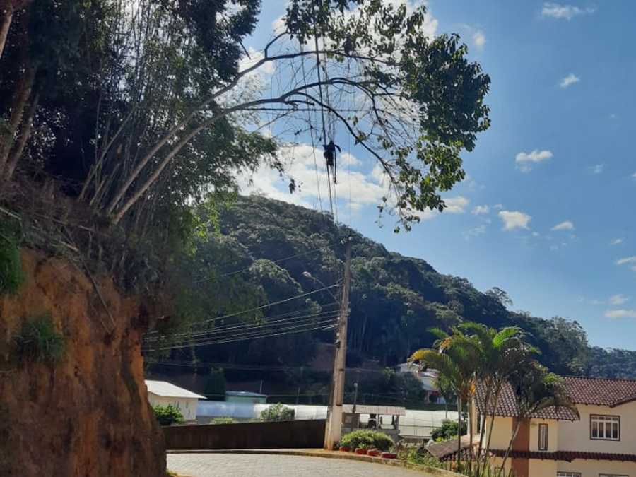 Uma situação inusitada está sendo enfrentada pelos moradores e quem trafega no sentido Quinta dos Lagos, próximo do Bairro Santa Rita, em Marechal Floriano. Uma árvore ameaça desabar sobre os cabos elétricos que amedrontam as pessoas que passam pelo local, principalmente os pedestres.