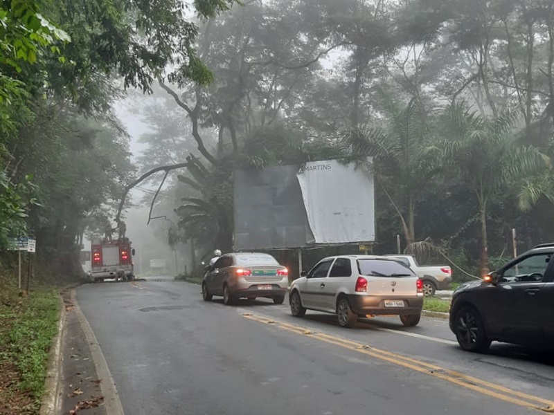 Árvore ameaçando queda na estrada que liga Campinho à BR-262 é cortada pelo Corpo de Bombeiros