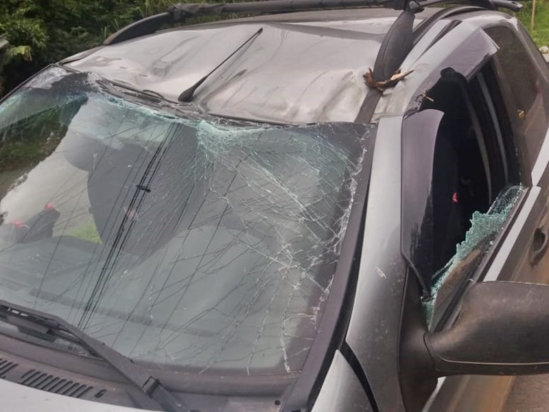 O vegetal apodrecido amassou o teto e destruiu o vidro pára-brisa dianteiro do veículo, além disso, atingiu Erci, com a tampa dianteira do motor do veículo e outras partes do carro que sofreram com o choque. A pancada amassou ainda a parte superior do carro, provocando prejuízos.