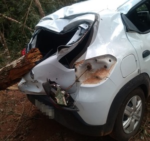 Ficou constatado que após o incidente, a árvore permaneceu travada sobre a parte traseira do automóvel destruíndo completamente a tampa da parte traseira onde se encontra o porta-malas.