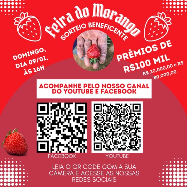 - Transmissão: Canal da Afemor no Youtube da Festa do Morango