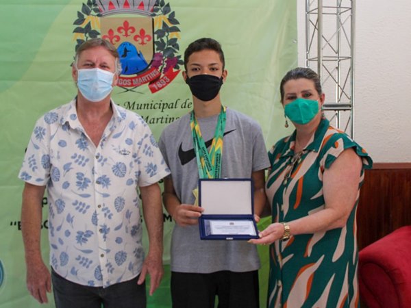 Na manhã de ontem (16), três atletas martinenses foram homenageados pela Prefeitura de Domingos Martins, por seus desempenhos no Supercampeonato Brasileiro de Taekwondo 2021, que aconteceu no mês de novembro no Rio de Janeiro. Gabriele Stein Meireles, de 14 anos e Lucas Alberto Siqueira Lutzke, 14 anos, foram destaque na competição que reuniu mais de 1,5 mil participantes. Juntos, eles trouxeram cinco medalhas para o município.