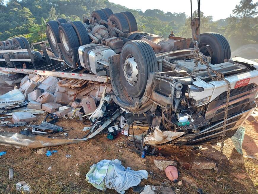 Caminhão colide contra caminhonete e vítima fica presa às ferragens