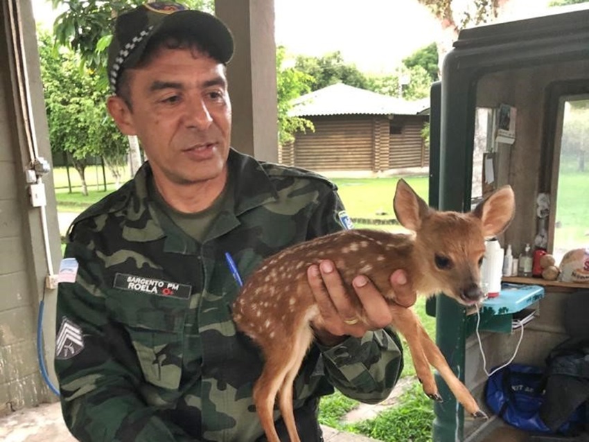 Policiais do Batalhão de Polícia Militar Ambiental (BPMA) resgataram, nessa quarta-feira (21), um filhote de cervo em uma propriedade localizada em São João do Garrafão, município de Santa Maria de Jetibá.
