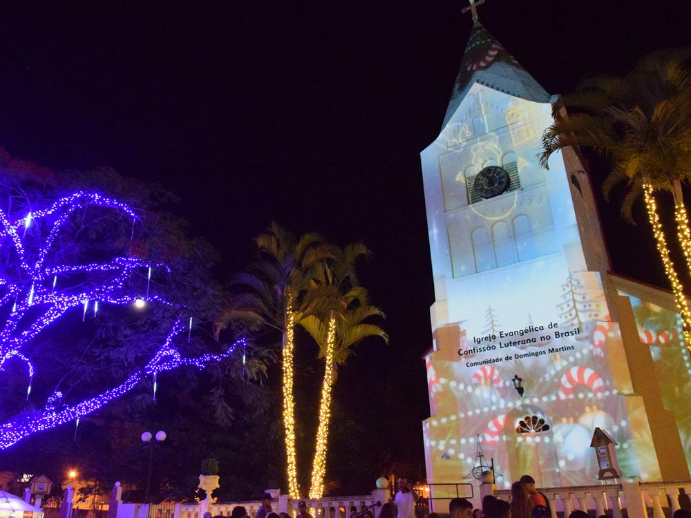 A projeção em vídeo encantou o público no dia 25 com imagens natalinas e homenagens especiais ao Grupo Folclórico de Danças Alemãs Bergfreunde de Campinho, aos 500 anos da Reforma Luterana e aos 300 anos da descoberta da imagem de Nossa Senhora Aparecida. Um show pirotécnico também está programado para a noite do dia 23.