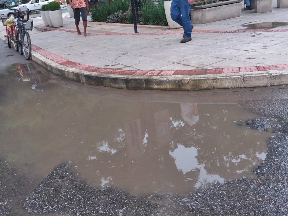 Bueiro entupido na pracinha causa transtornos em Marechal Floriano