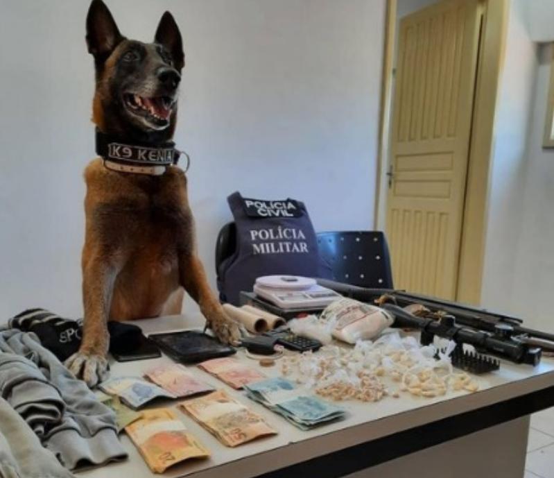 Uma operação das polícias Militar e Civil, em São Bento, no distrito de Aracê, em Domingos Martins, resultou na apreensão de drogas, dinheiro, três pessoas detidas e duas apreendidas, sendo uma menor de idade. A cadela Kênia teve participação importante durante a ação policial ao encontrar a droga na casa onde estavam os detidos.