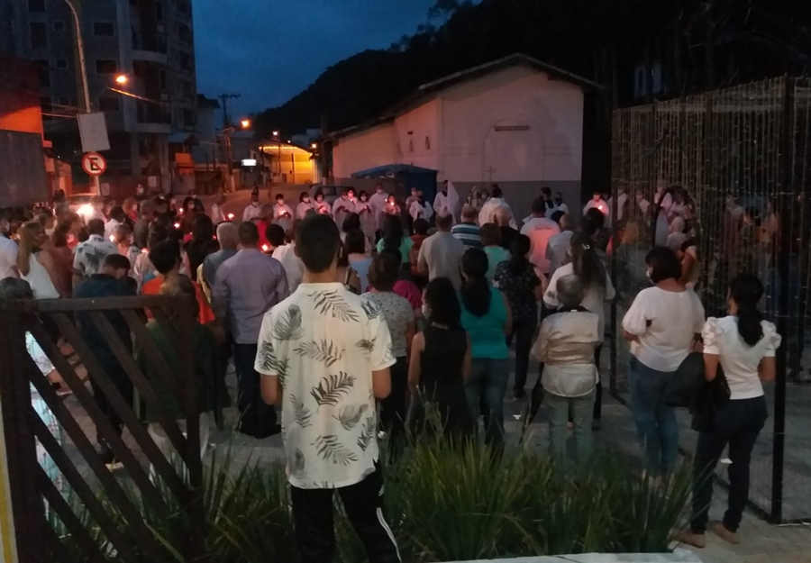O início do evento atraiu os católicos e parte deles permaneceu até a saída para a Igreja de Sant’Ana, ficando de pé sobre a plataforma da antiga estação ferroviária, atual Museu da Imigração. Na saída para a Igreja de Sant’Ana houve a total organização do padre Marcos Brito, atual pároco. Todos usavam máscaras.