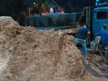 Um caminhão marca Mercedes-Benz, carregado com serragem, material conhecido por pó-de-serra, que é utilizado nos pisos dos galpões das granjas avícolas da Região Serrana do Espírito Santo, passou por um defeito no sistema de frenagem e acabou tombando na pista asfáltica em um trecho movimentado da BR-262.