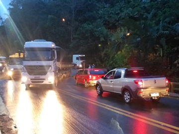 Nenhum veículo que seguia em sentido contrário trafegava naquele momento quando o caminhão tombou e fechou a pista. Todo o material pertencente a uma empresa de produção avícola caiu no meio da via federal e parou o trânsito momentaneamente.
