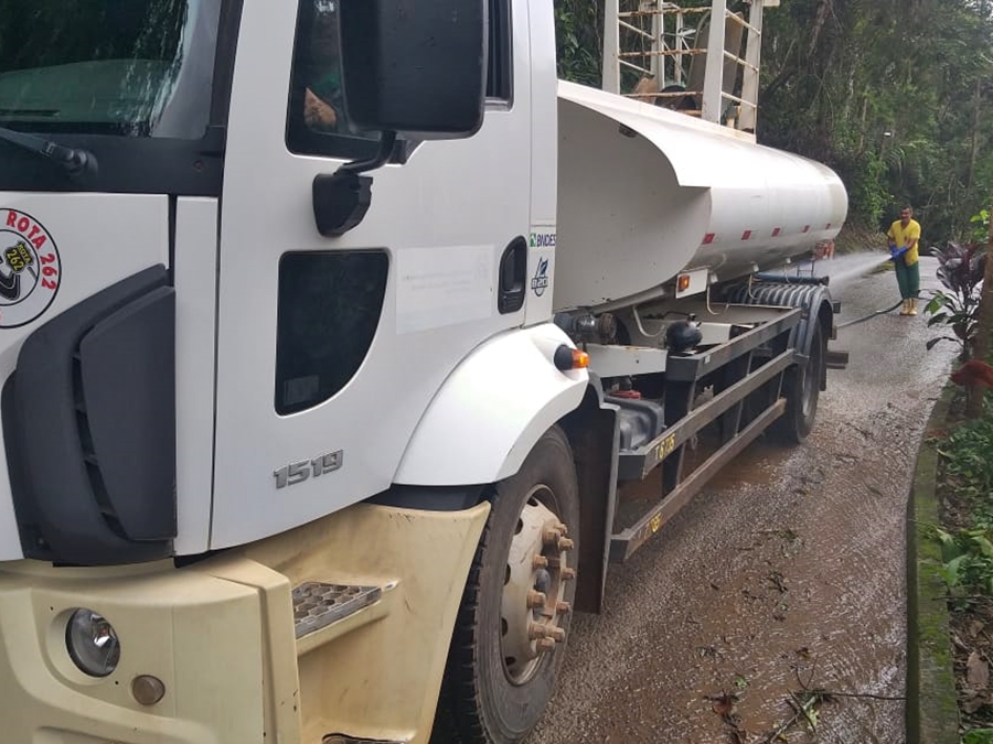 Caminhão tanque lava estradas do interior de Marechal Floriano