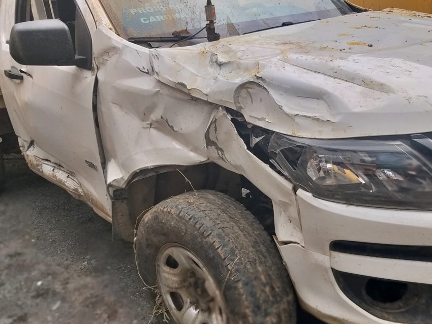 Nos estragos do veículo acidentado se destacam o amassamento lateral da cabine, destruição de parte da carroceria e dos materiais, além do chassi da caminhonete, que ficou totalmente avariado. O veículo está estacionado em uma garagem em Marechal Floriano e aguarda a chegada dos responsáveis da empresa proprietária do carro destruído.