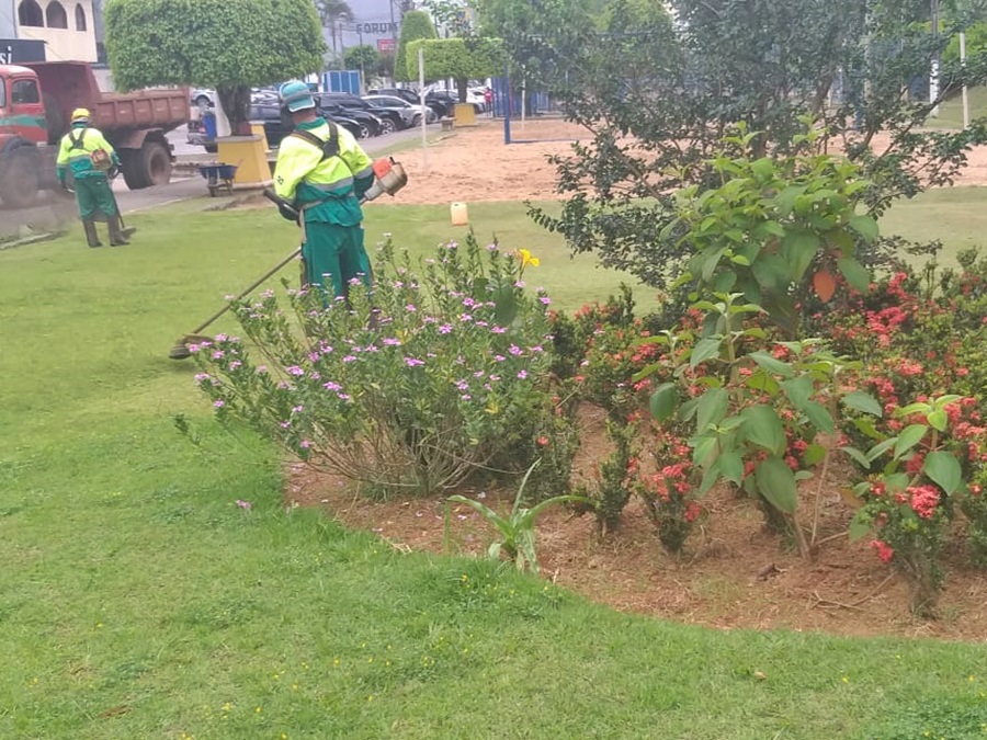 Capim alto começa a ser cortado na sede de Marechal Floriano