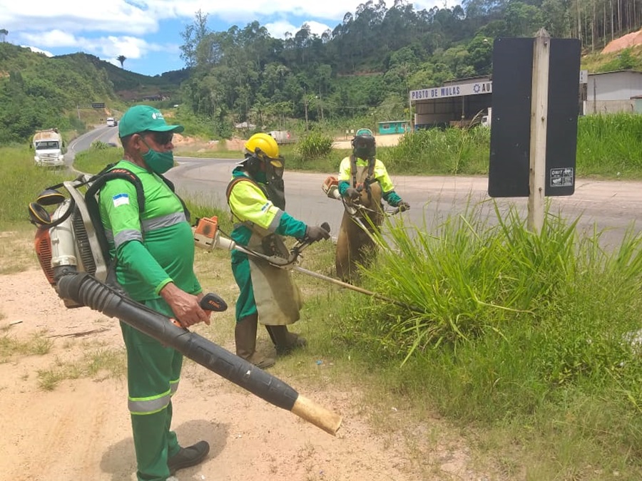 Equipes de trabalhadores braçais de uma empresa que presta serviços à Secretaria Municipal de Obras e Serviços Urbanos de Marechal Floriano foram designadas para realizar o corte do capim alto que está provocando perigos constantes nos trevos de Paraju e de Santa Maria, na BR-262.