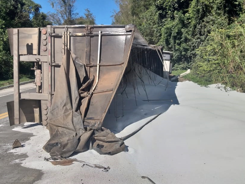 O acidente aconteceu por volta das 8 horas, em uma curva fechada após a carreta ter trafegado sobre uma ponte sobre o Rio Fundo, quando derrapou na lateral e tombou, despejando parte importante do adubo ao lado da pista, que permaneceu somente com uma mão de direção.