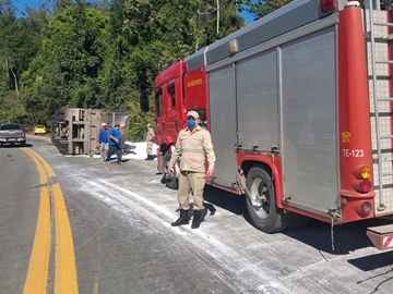 A ocorrência foi atendida por uma equipe do Corpo de Bombeiros de Marechal Floriano, com os profissionais Schunk, Duprado, Knack, Onã, Hansmiller e Dublado. Além de socorrerem o casal que estava na carreta, o grupo trabalhou no controle do trânsito na via federal, antecedendo a chegada da Polícia Rodoviária Federal (PRF).