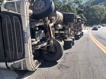 Carreta desgovernada tomba após ponte na BR-262 e duas pessoas ficam feridas