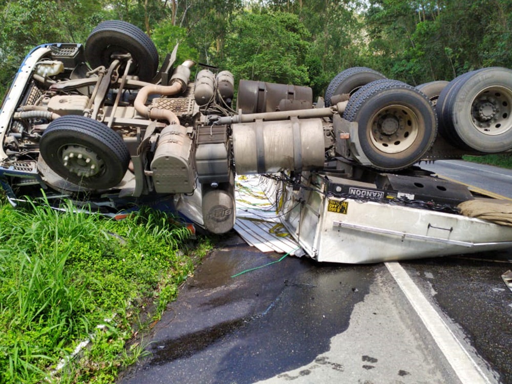 Um acidente envolvendo uma carreta na BR-262 por pouco paralisava o trânsito nos dois sentidos. A carreta Volkswagen seguia de Minas Gerais para Vitória e no quilômetro 70, na localidade de Canarinho, distrito de Victor Hugo, em Marechal Floriano, o motorista perdeu o controle da direção e capotou.