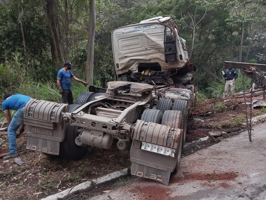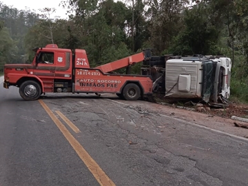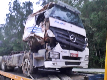 A ocorrência foi registrada pela Polícia Rodoviária Federal (PRF) na tarde de ontem (09). O veículo, uma Mercedes Benz, fechou uma faixa da rodovia federal, onde o trecho é de curvas perigosas. O motorista da carreta sofreu escoriações pelo corpo, como um pequeno corte na orelha.