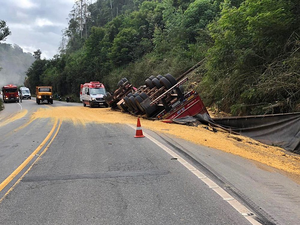 O motorista foi retirado da cabine e posto em uma maca pelos agentes do Corpo de Bombeiros e a seguir, encaminhado pelo SAMU até o Hospital Doutor Arthur Gerhardt, mas recebeu os primeiros atendimentos no local. Apesar de a carreta ter parado ao lado da pista após o tombamento, parte importante do carregamento de milho que estava na carroceria, foi despejada no meio da estrada federal.