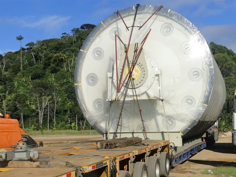 O peso bruto da peça é de 120 toneladas e para trafegar na estrada federal é necessária a remoção periódica dos semáforos e radares devido à altura da carga. Uma empresa especializada acompanha a carreta, bem como veículos denominados “batedores de segurança”, além de viaturas da Polícia Rodoviária Federal (PRF).