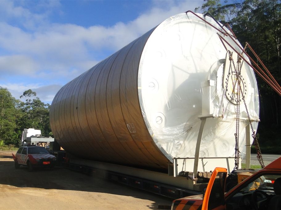O enorme veículo está carregado com um aparelho secador de celulose, fabricado por uma empresa da China. A peça foi carregada no Porto de Vitória e, ontem (16), chegou à BR-262, saindo de Viana até Marechal Floriano. O trânsito parou, já que a carreta possui 60,8 metros de comprimento e 5,5 metros de largura.