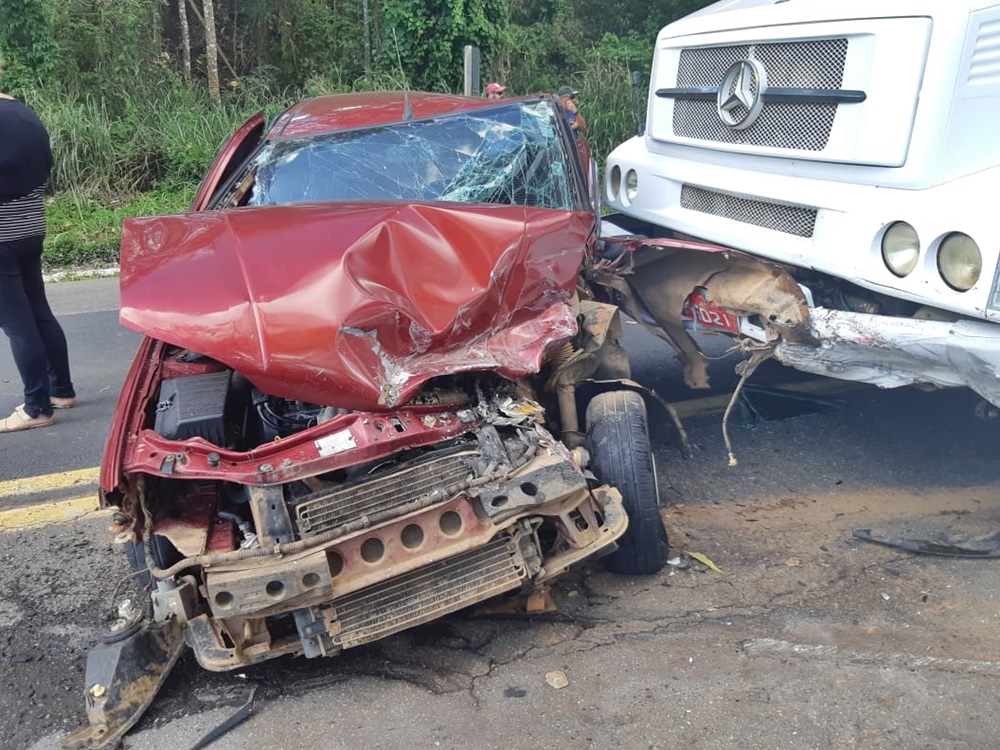 Carro de passeio atinge caminhão na BR-262 e motorista fica gravemente ferido
