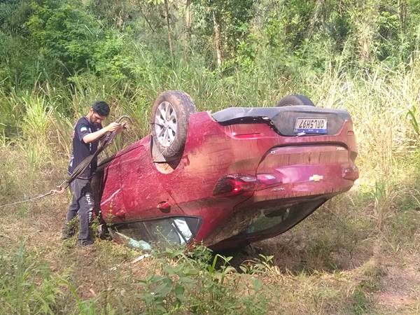 “Não temos conhecimento sobre as situações do motorista e também, caso haja acompanhantes”, disseram os agentes da PRF. Foi constatado por eles que após a saída pela lateral da pista, o carro entrou em um matagal, tombando com as rodas para cima e ficou destruído.