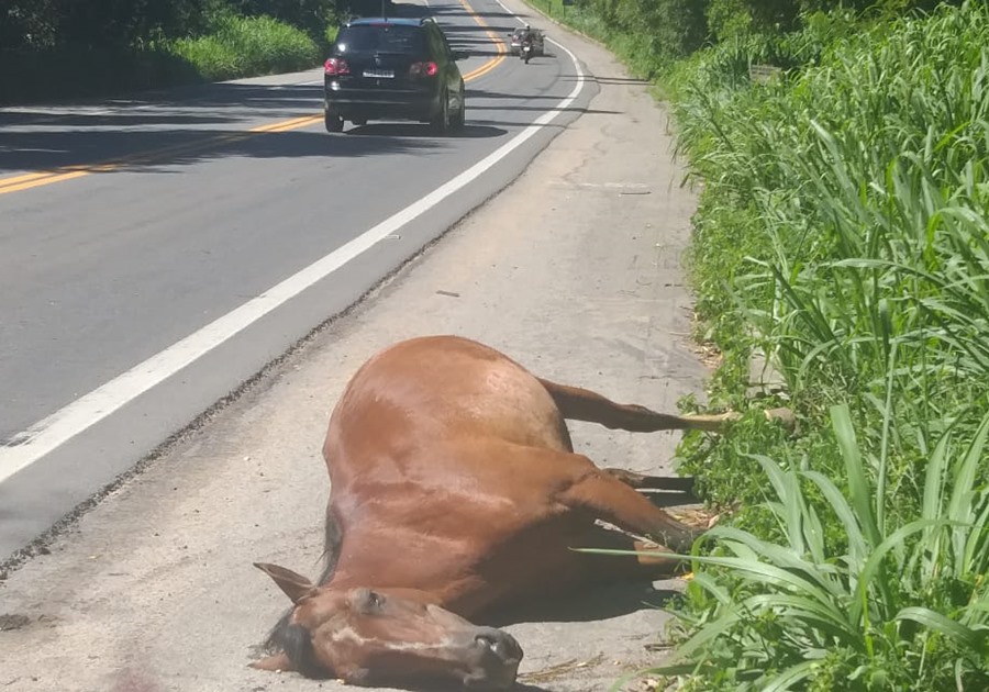 Cavalo é morto por atropelamento e fica caído às margens da BR-262