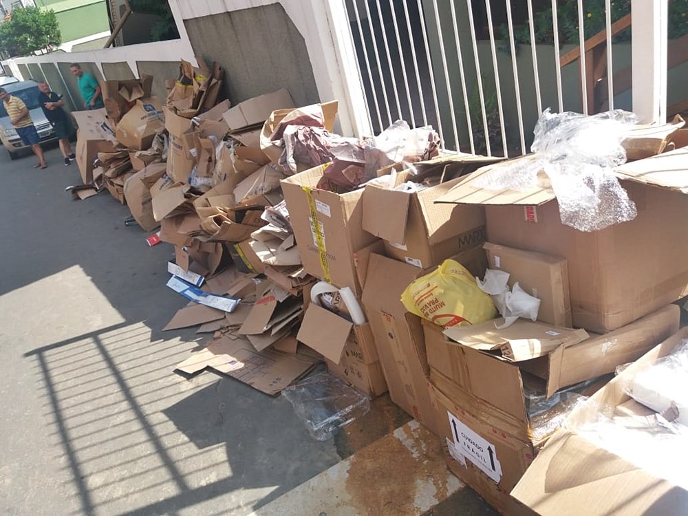 Centenas de caixas de papelão vazias amanhecem na rua em Marechal Floriano