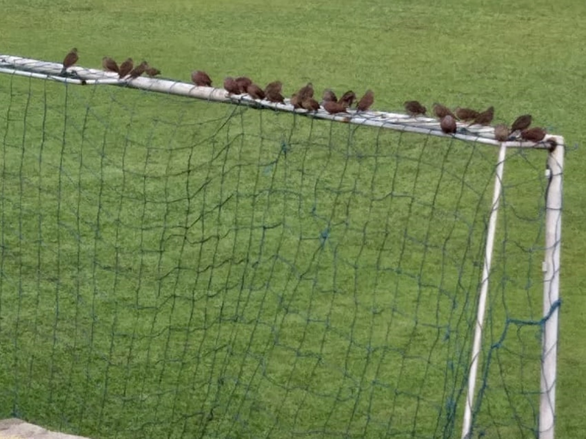 Centenas de pássaros retornam ao gramado de estádio após enchentes em Marechal Floriano