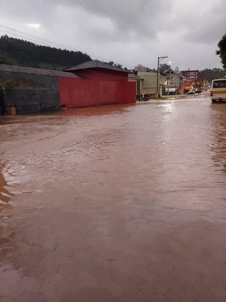 Chuva alaga ruas e BR-262 cede em Pedra Azul