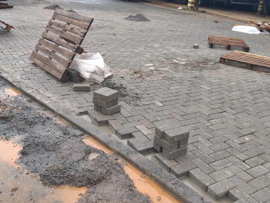 A equipe de uma empreiteira que constrói o calçamento localizado no bairro Trevo de Paraju paralisou temporariamente, nesta manhã de quinta-feira (22), os serviços devido as chuvas constantes. Mas mesmo assim, nos momentos de trabalho, o desempenho é considerado como alto e de qualidade.