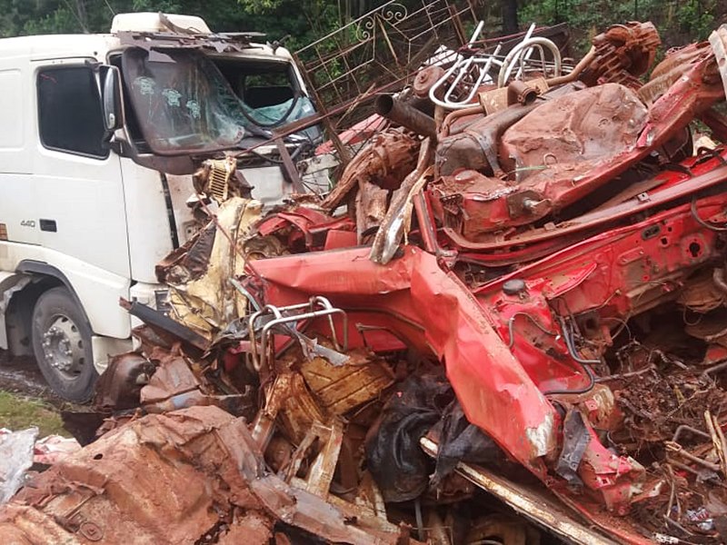 Chuva fina, neblina e pista lisa podem ter provocado uma colisão frontal entre o caminhão Mercedes Benz GOR 5624 (Cariacica) com a carreta Volvo MTU 5770 (Vila Velha). O motorista profissional Isack de Almeida Pereira, 45 anos, sofreu morte instantânea.