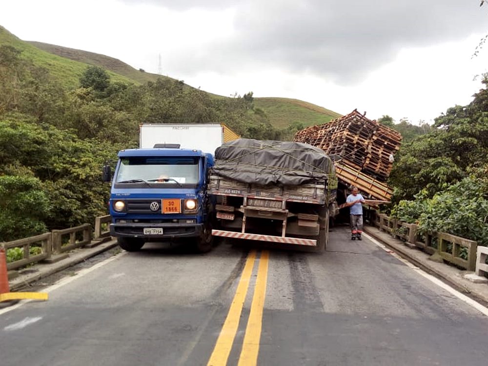 Colisão envolvendo três caminhões para a BR-262