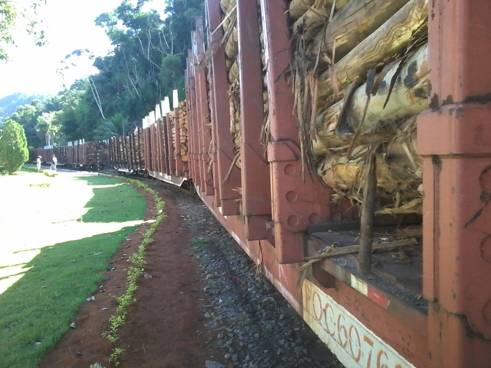 Em virtude do deslizamento da rocha, os trens transportando eucaliptos para uma empresa de celulose, no Norte do Estado, tiveram os trajetos paralisados. Uma composição está estacionada em Marechal Floriano e obedece com fidelidade as passagens de níveis no centro.