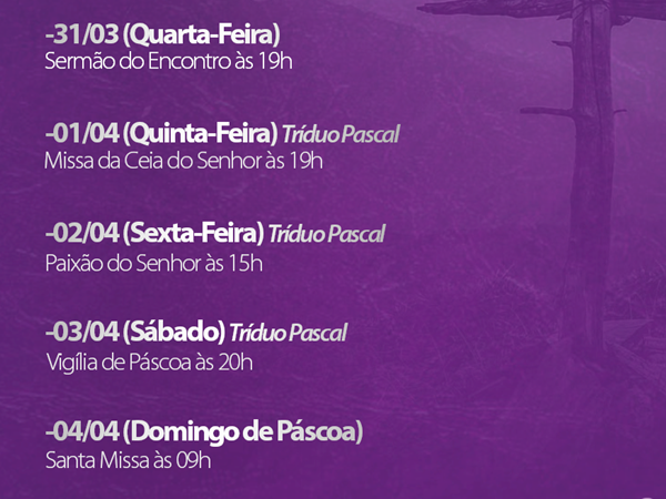 Na igreja, não haverá participação presencial dos fiéis, apenas das pessoas envolvidas na liturgia e a equipe de transmissão. As celebrações começaram no último domingo (28), com a Missa de Ramos, e retornam nesta quarta-feira, com o “Sermão do Encontro”,às 19 horas, e seguem até a Solenidade da Páscoa do Senhor, no próximo domingo (4).