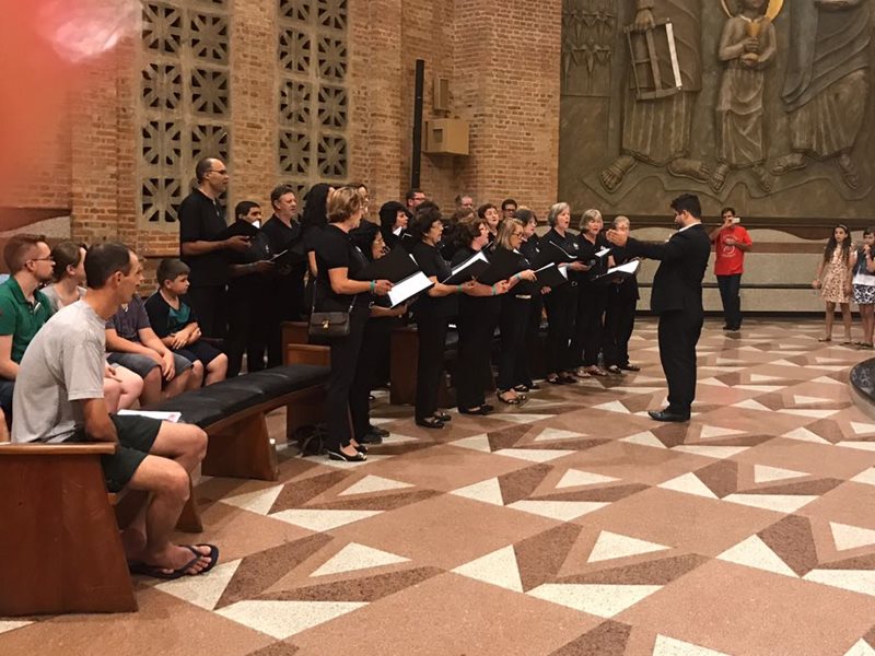 Para agradecer pelos cinco anos de muito sucesso, integrantes do Coral São José, de Santa Maria de Marechal – que é regido pelo maestro Max Carvalho – viajaram até a cidade de Aparecida (SP). Os coristas tiveram a honra de fazer uma bonita apresentação na Capela de São José, localizada dentro do Santuário Nacional de Aparecida.