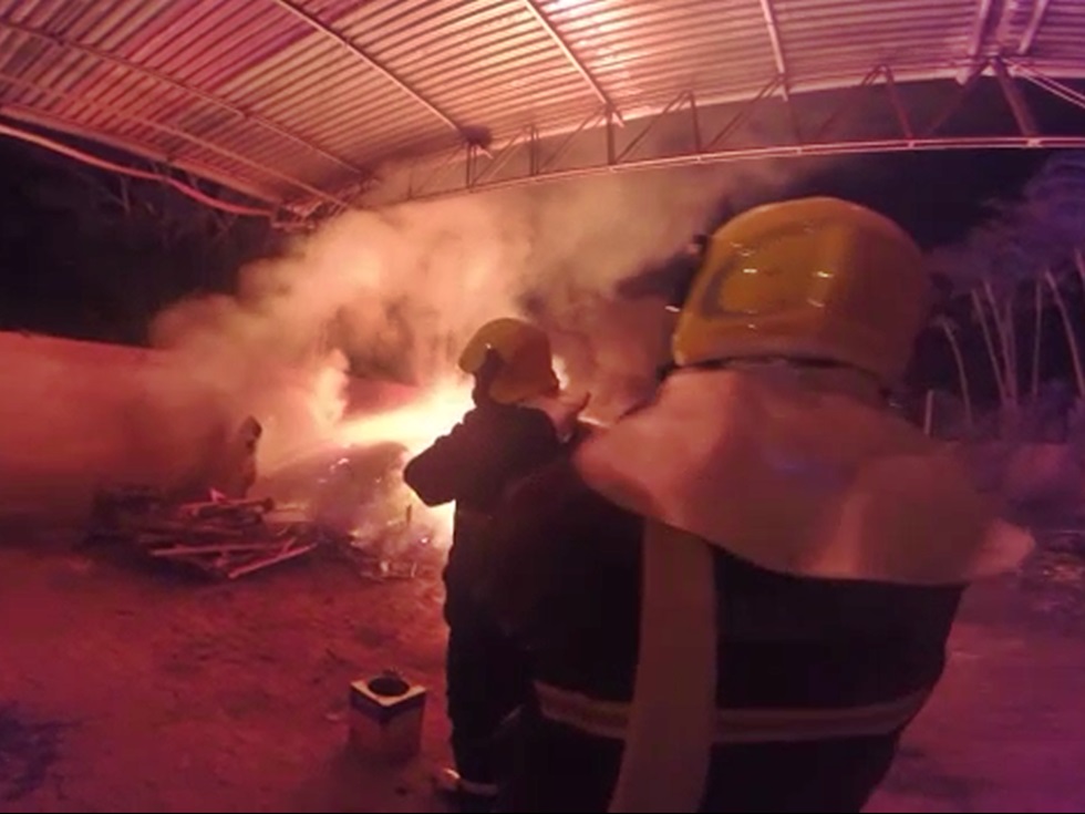 As chamas que tomaram conta de parte do fundo do galpão, onde há algum tempo funcionou como depósito de produtos recicláveis, também queimaram outros materiais combustíveis, como os armários de mdf. Rapidamente, a equipe de bombeiros, chefiada pelo Capitão Diógenes, seguiu para o local, onde foi estabelecida uma linha com três mangueiras e as chamas foram contidas.