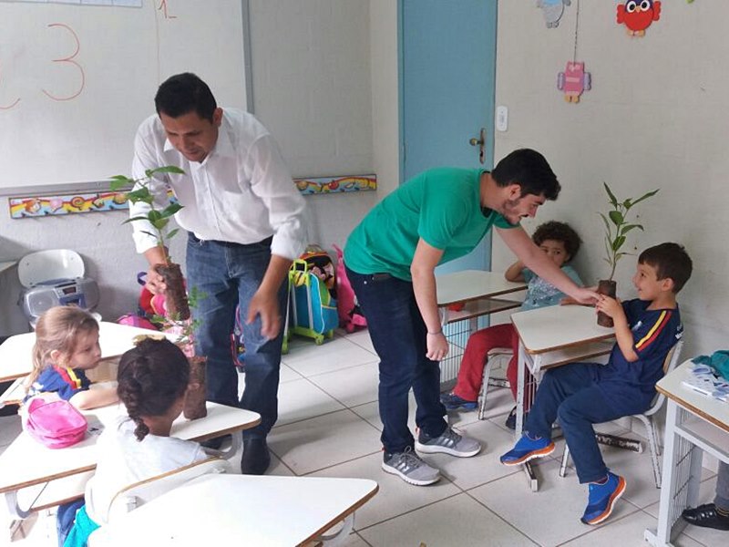 Os autores da doação espontânea das plantas de Pau Brasil e Ipê Branco, o técnico do Incaper Ubaldino Saraiva e o estudante Felipe Delpuppo, ambos do Poder Legislativo de Marechal Floriano, ao entregarem as plantas, orientaram os meninos e meninas sobre a necessidade de preservar o meio ambiente.
