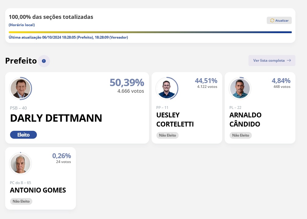 Com uma margem de 544 votos de vantagem sobre o segundo colocado, Darly Dettmann é eleito o novo prefeito de Itaguaçu. Ele irá comandar o executivo municipal a partir do próximo ano.