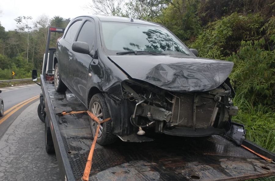O acidente na tarde desta sexta-feira (16), que envolveu dois carros de passeio, causou ferimentos leves aos passageiros no quilômetro 40, ás 15 horas. Os veículos envolvidos foram um Toyota modelo Etios Hatch e um Honda Civic. Houve uma colisão forte com destruição de boa parte da lataria dianteira dos dois carros e um deles saiu totalmente da pista após a colisão.