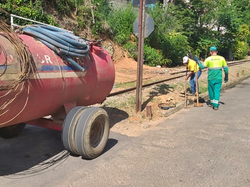Desentupidas as tubulações de esgotos no Bairro Poço Fundo