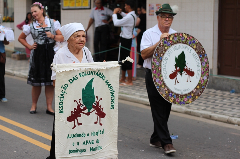 Ao longo do percurso, foi apresentada uma diversidade de trajes típicos, que variaram desde o tradicional Lederhosen (calça curta de couro) até vestidos típicos adornados com flores, que representaram diferentes aspectos da cultura alemã, como a gastronomia e a música. Carros alegóricos retratavam aspectos diversos da cultura, presente até os dais atuais no município, como as formas de trabalho no interior.